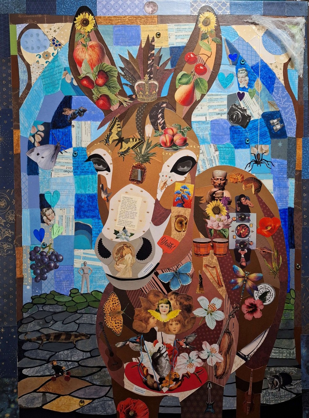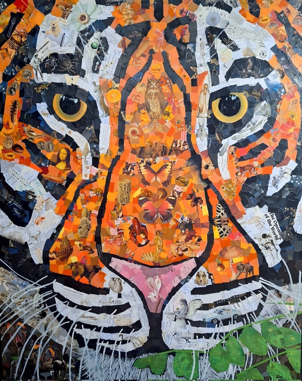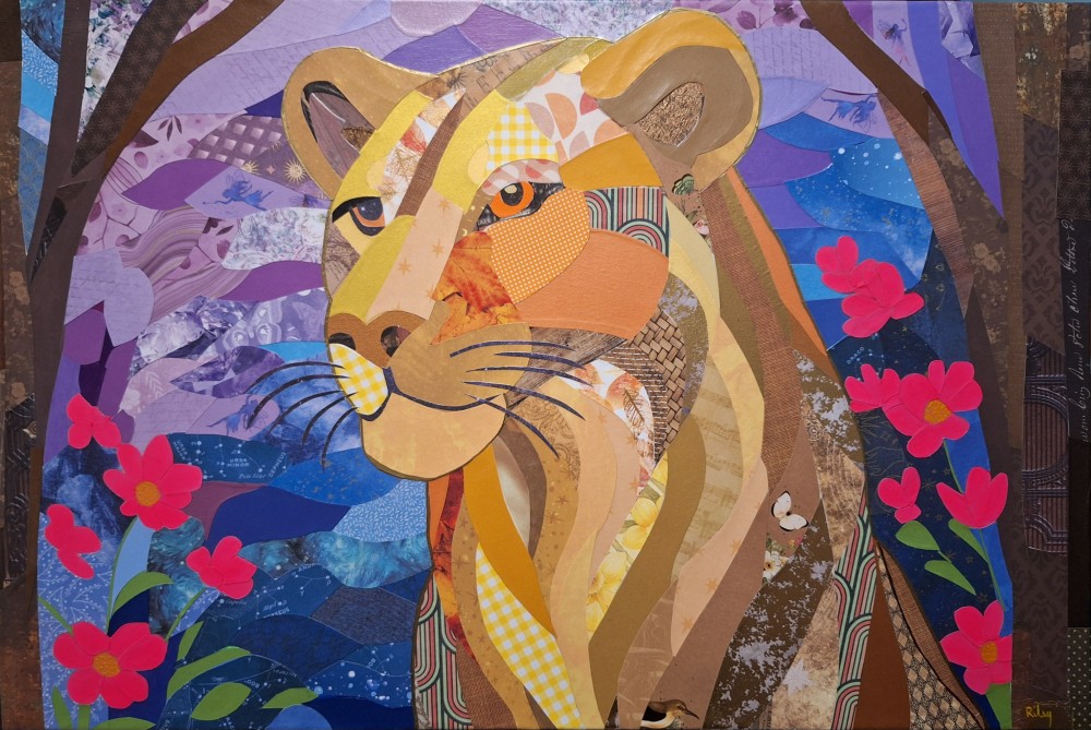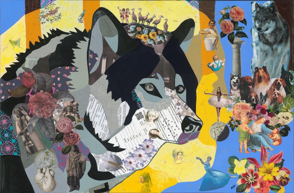 My collage practice, honed over three decades, reflects an extensive accumulation of materials—from magazines spanning over half a century to personal artifacts. Under the framework of "Little Stories and The Big Picture," I meticulously curate images through a fusion of precise cuts and intuitive rips. This convergence of disparate elements forms cohesive pieces that resonate with personal narratives, often culminating in larger compositions where animals serve as potent symbols, inviting viewers into a dynamic visual dialogue.