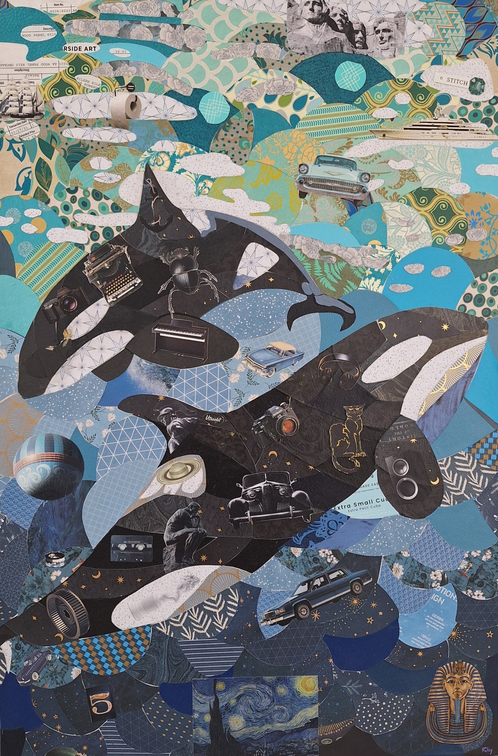 My artistic journey is a vibrant exploration of diverse media and techniques, each contributing to a cohesive body of work that reflects my enduring passion for Surrealism, Symbolism, and rich color. The retrospective titled "Life of Riley" in 2023 encapsulated this immersive journey, showcasing not only my long-standing dedication to collage but also my evolving painting and sculptural practices.